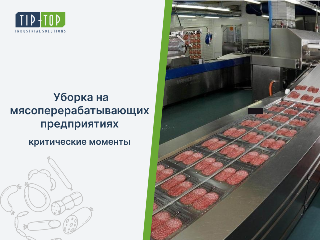 Уборка на предприятиях мясоперерабатывающей отрасли требует особенного внимания и профессионализма. Среди наших партнеров есть несколько крупных заводов по производству мясной продукции. Поэтому мы знаем на практике, что такие предприятия требуют особого подхода к уборке. Безопасность продукции — это вопрос, который всегда стоит на первом месте. Ведь малейшие нарушения санитарно-гигиенических норм могут привести к серьёзным последствиям.